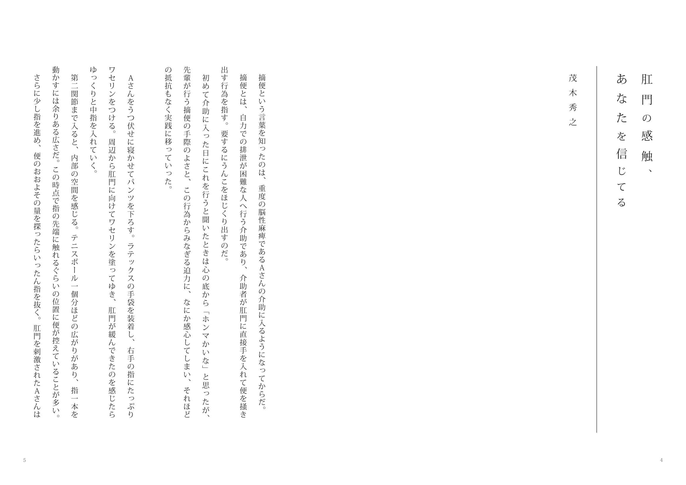 生業にしている障害者の介助やさまざまなケアの行為、あるいはもっと広く身体にはたらきかけること、そして子どもと暮らすこと。それを現代の価値観から遠い所で考えたいと思いました。民俗学や人類学や宗教学の知恵を借りて、一緒に考えてくれる人たちと話し合いながら、一冊の本をつくりました。